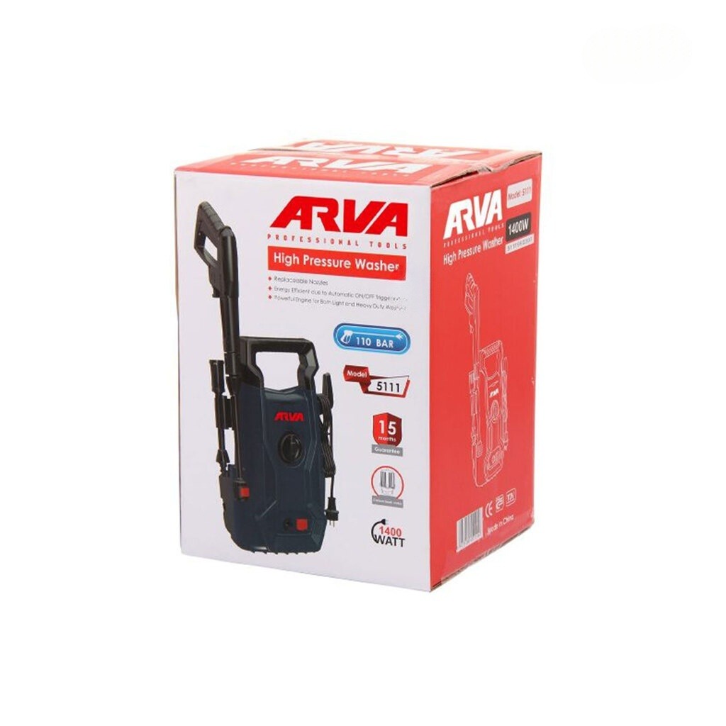 کارواش خانگی آروا مدل 5111 برای مصارف صنعتی و خانگی کاربرد دارد و به شما کمک می کند تا در زمان کمتر بتوانید نظافت خودرو ، منزل ، پارکینگ و یا حتی استخر خود را انجام دهید . منبع تغذیه ی این مدل کارواش ، برق متناوب شهری با ولتاژ 220 است و قدرت موتور این دستگاه 1400وات و از نوع تک فاز است و مجهز به سنسور قطع کن است و این سنسور باعث می شود زمانی که موتور داغ می شود از اسیب رساندن به موتور جلوگیری کند.کارواش خانگی مدل 5111 می تواند دمای آب را تا 60درجه سانتیگراد نگه دارد .