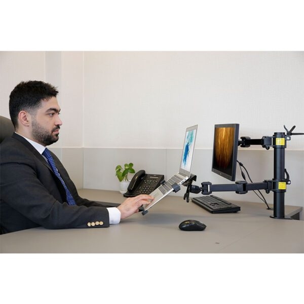 قابلیت تغییر موقعیت قرارگیری مانیتور و لپ تاپ متناسب با نیازهای ارگونومیک کاربر به صورت مجزا
